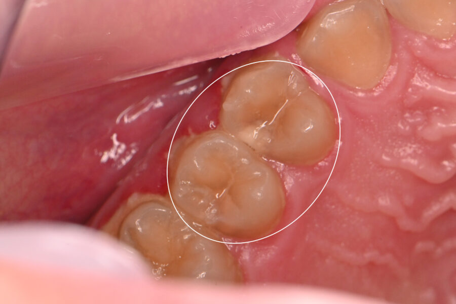 神経の近くまで虫歯だったのでMTAセメントで神経を守り、