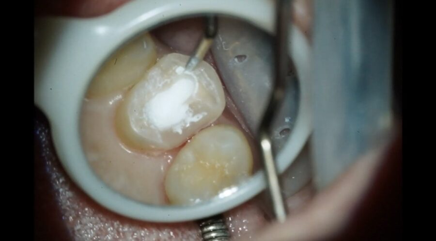 削ると歯と歯の間から虫歯が進行し、まだ虫歯が残ってる状態になります。