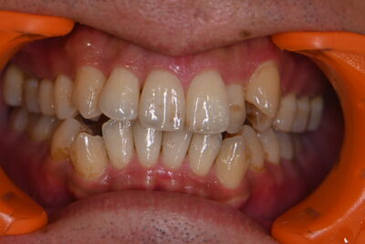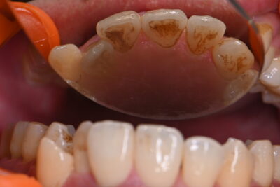 他の歯医者さんで以前からエアフローで着色を除去されてきた患者様ですが、前回してから半年期間が空いてしまったら再度着色が目立つようになったのこと💦