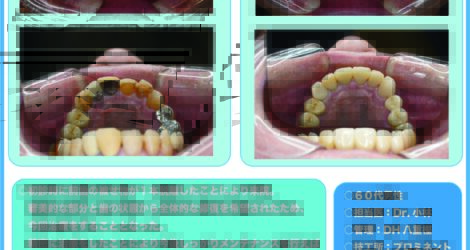 最初は中切歯・側切歯・犬歯の6本の予定でしたが、治療後に右上の第一・二小臼歯の被せ物も取れてしまいここも治療を行いました