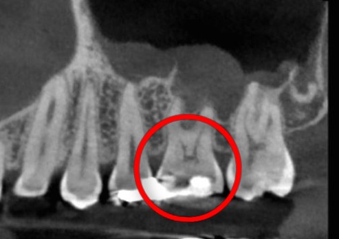 CTを撮った所、仮詰めの下が虫歯になっていました💦何もしなくても痛いということで、早急に仮詰めを外して中を確認しました!