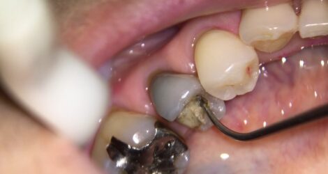 今回はクリーニング中にフロスを通したら銀歯がポロッと取れてしまった患者様の症例です。