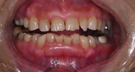 取れてしまった部位はMTAとフルジルコニアで治療することとなりましたが、クリーニングもずっとしていなかったため、全体的にプラークが付付着していました